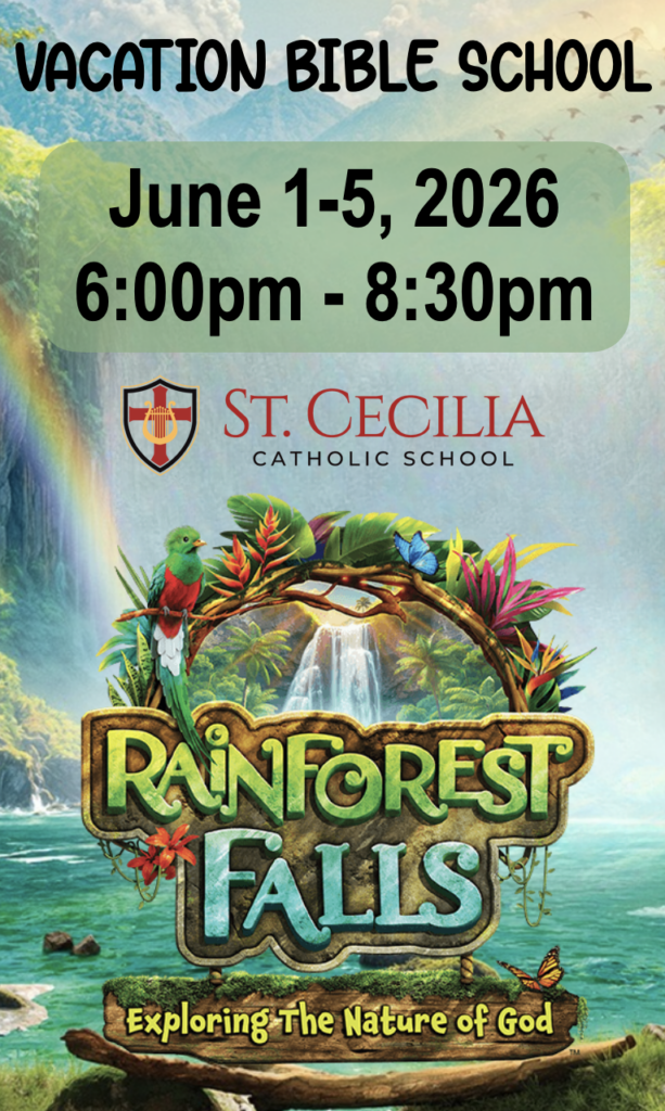 To register, please click the link and complete a separate form for each child. After registering, it is very important that you submit your $15 payment (per child) by cash or check (made payable to St. Cecilia Church). Payments can be dropped off at the church office, the school office, or placed in the offertory basket during Mass.