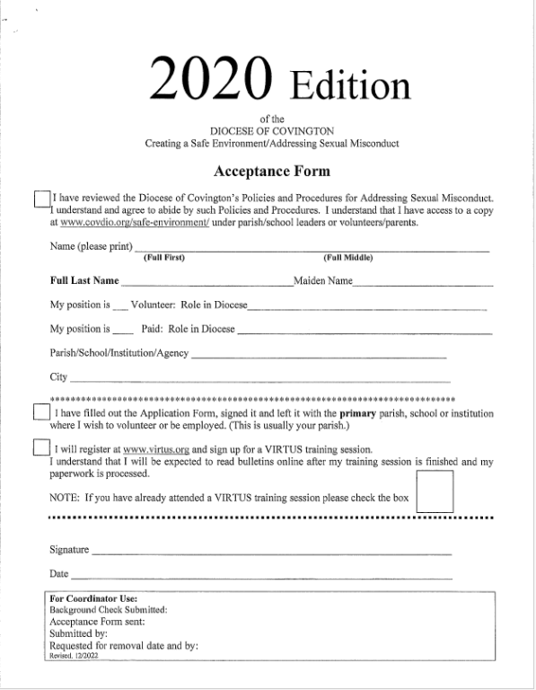 For all employees and volunteers of the Diocese of Covington who in any way provide a safe environment for children.